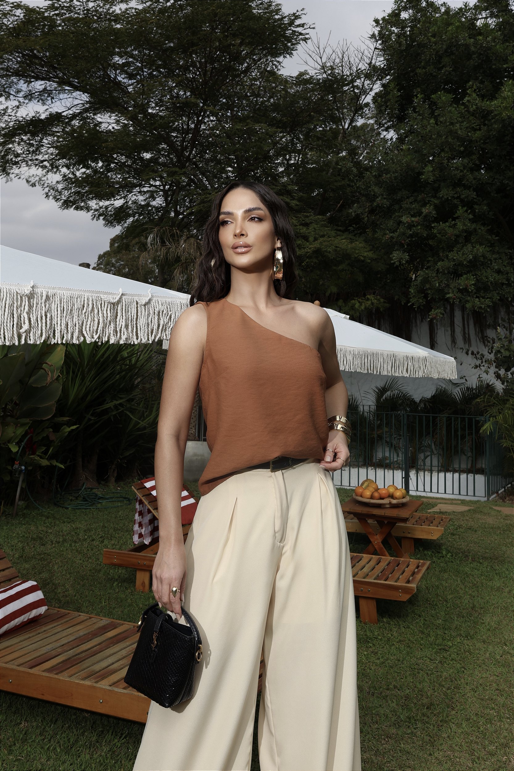 Seu design assimétrico de um ombro só cria uma silhueta moderna e ousada, perfeita para quem busca estilo com personalidade. A modelagem reta valoriza o corpo sem marcar, trazendo versatilidade para composições que vão do casual chic ao social sofisticado.