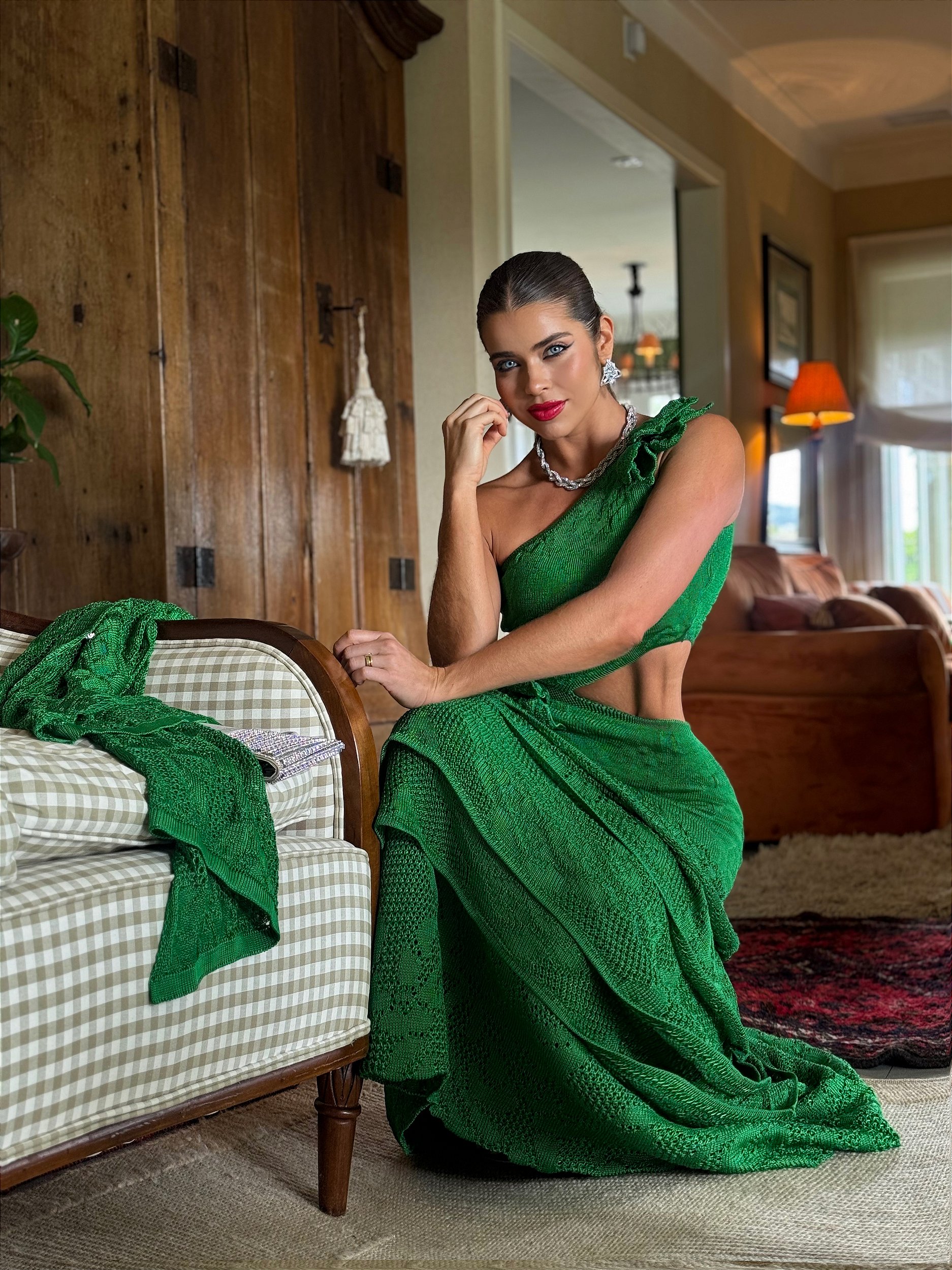O Vestido Angelina é uma verdadeira joia da moda, desenvolvido para mulheres que desejam unir romantismo, frescor e elegância em uma só peça. Confeccionado em tricot premium, seu toque suave e caimento perfeito oferecem conforto e valorizam a silhueta com delicadeza.