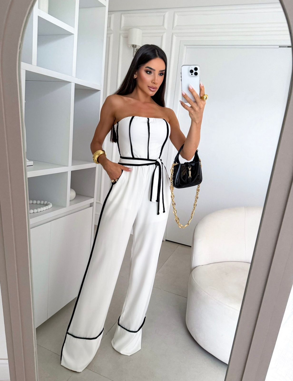 O Macacão Cleo é a definição de sofisticação contemporânea. Uma peça que combina linhas limpas, contraste marcante e modelagem impecável para mulheres que gostam de transmitir presença com elegância.