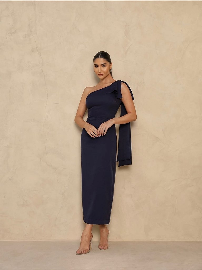 -Confeccionado em alfaiataria premium nosso modelo midi possue uma modelagem impecável com uma fenda na parte de trás e um zíper nas costas , laço no ombro que trás esse toque mais refinado .