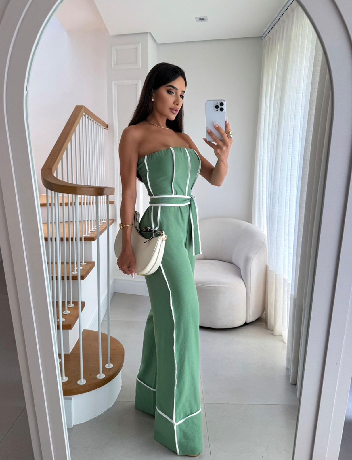 O Macacão Cleo é a definição de sofisticação contemporânea. Uma peça que combina linhas limpas, contraste marcante e modelagem impecável para mulheres que gostam de transmitir presença com elegância.